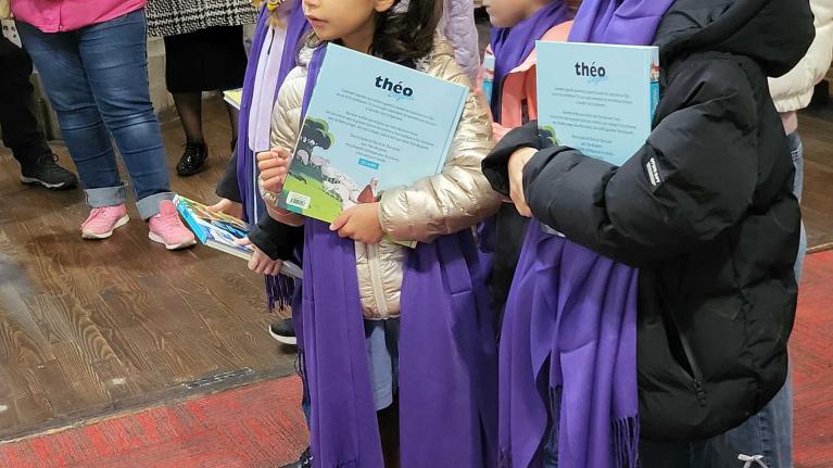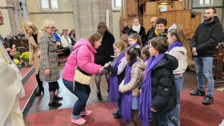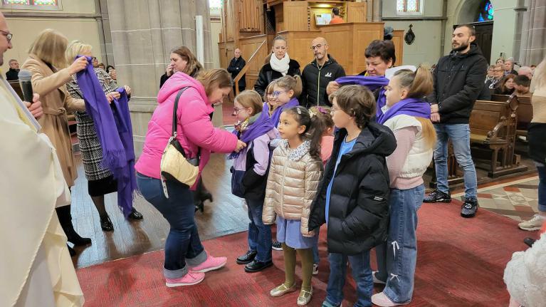 Levanah, Cirilla, Elsa, Léa, Keyssie et Lisa étaient entourés de leurs familles et parrain, marraine pour ces premiers pas. L'abbé les a signé sur le front, puis les catéchistes leur ont remis l'étole violette, signe de leur démarche vers le baptême. Puis chaque jeune s'est vu remettre le livre qui va les préparer : le Théo Benjamin. Une très belle célébration, lors de laquelle, les jeunes étaient nombreux à participer.