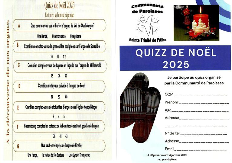 Francis KLASER, notre curé, s’absentera de la Communauté Ste Trinité de l’Albe durant le mois de janvier 2026 pour participer à la retraite spirituelle Ignacienne des 30 jours.