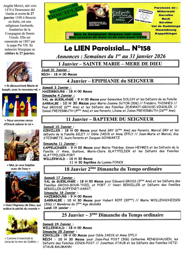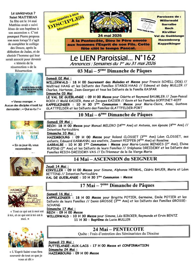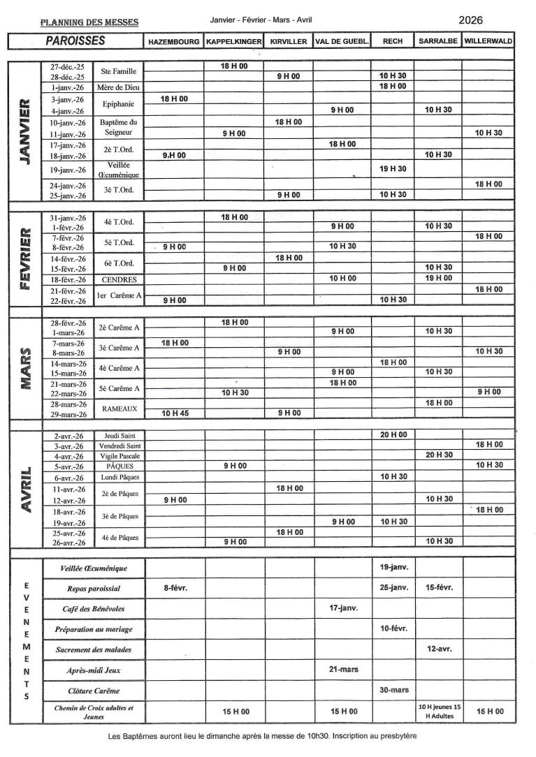 Nous vous rendons attentifs, au fait que si dans la paroisse où a lieu la messe,