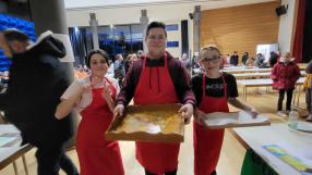 Retour sur l'évènement : "Les tabliers rouge" (les jeunes confirmands) vous attendaient pour vous servir et vous faire déguster une bonne crêpe, pour une modique somme. En cuisine, l’abbé Francis Klaser l’archiprêtre, faisait sauter les crêpes, dans un sérieux, que nous lui connaissons. Ce sont près de 25 jeunes qui ont accueilli les gens pour les inviter à la dégustation et les servir à table.