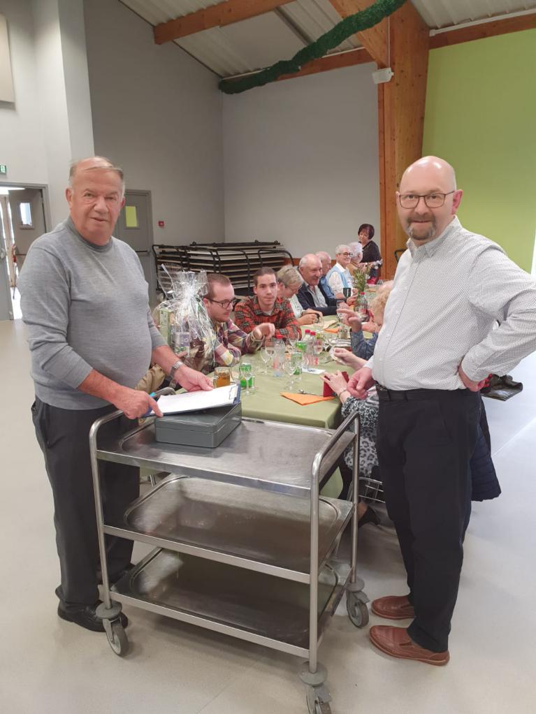 Au cours de l’après-midi, un panier garni a circulé parmi les participants. Mme Isabelle Haxaire (l’épouse du maire) a été l’heureuse gagnante. Dans un bel élan de générosité, elle a choisi de remettre le panier à la personne la plus âgée présente dans la salle (Mme Druar Marie, 91 ans), un geste apprécié et salué par l’ensemble des convives.