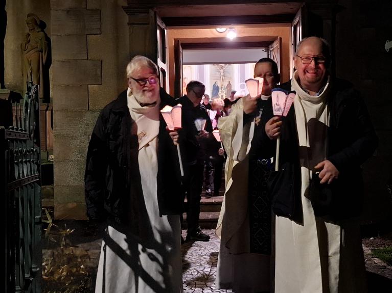 Grande fête de l'immaculée Conception avec une veillée et la messe et la procession aux flambeaux jusqu'à la grotte de Lourdes. Très belle célébration communautaire en archiprêtré