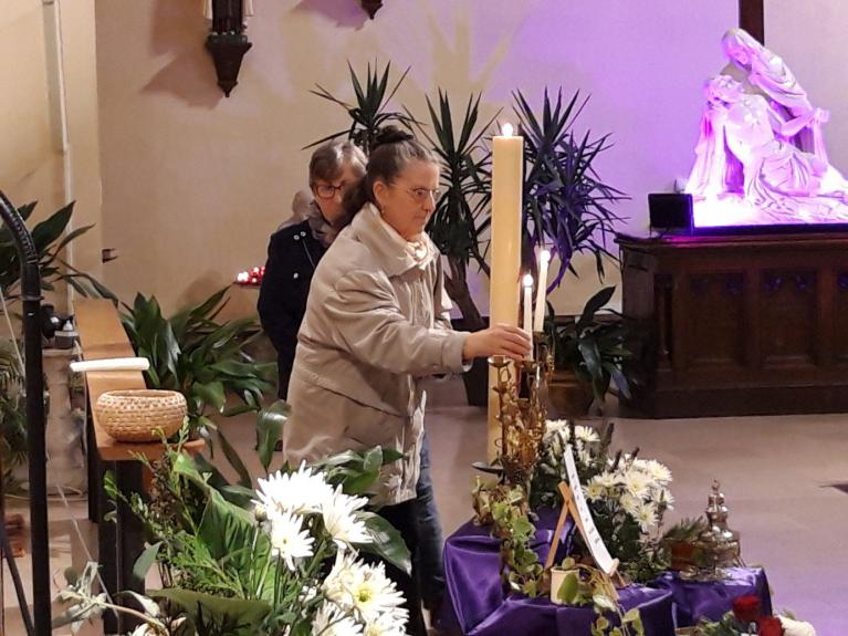 L’équipe de Véronique Nemsguers (ALP) avec l’abbé Francis KLASER curé archiprêtre de Sarralbe, avaient préparé une très belle veillée sur le thème en rapport avec le jubilé des 800 ans de la cathédrale de Metz : « Porteurs de Lumière »