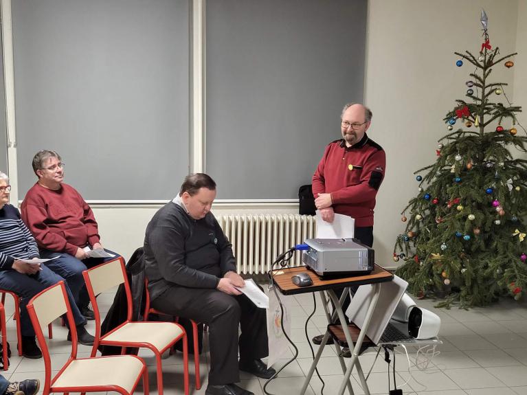 Ce lundi, organisé par l’abbé Francis Klaser Curé archiprêtre et le diacre Michel Barbiche, que presque tous les participants au dernier pèlerinage du 29 au 31 juillet dernier organisé par l'archiprêtré étaient présents pour cette soirée de retrouvaille. C'est au foyer d'Eich que tous avaient rendez-vous, pour échanger et se remémorer des bons moments du dernier pèlerinage. Le repas a été concocté par Sylvain MULLER et son épouse Michèle qui avait aussi participé au pèlerinage. Entre le fromage et le dessert, tous ont eu droit à regarder le film monté par Michel avec les vidéos et les photos prises lors du pèlerinage. Un grand moment de remémoration. Ces retrouvailles, sont des moments qui resserrent des liens d’amitiés. Tous sont prêts à repartir en juillet-août 2026.
