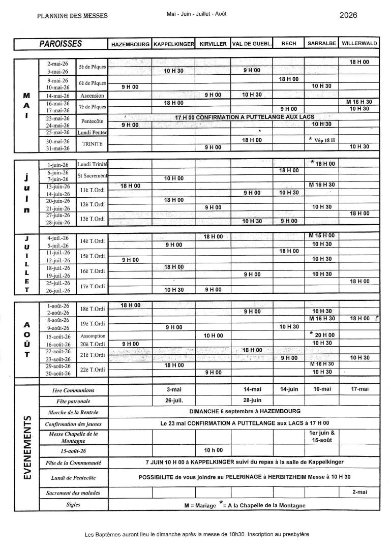 Nous vous rendons attentifs, au fait que si dans la paroisse où a lieu la messe,